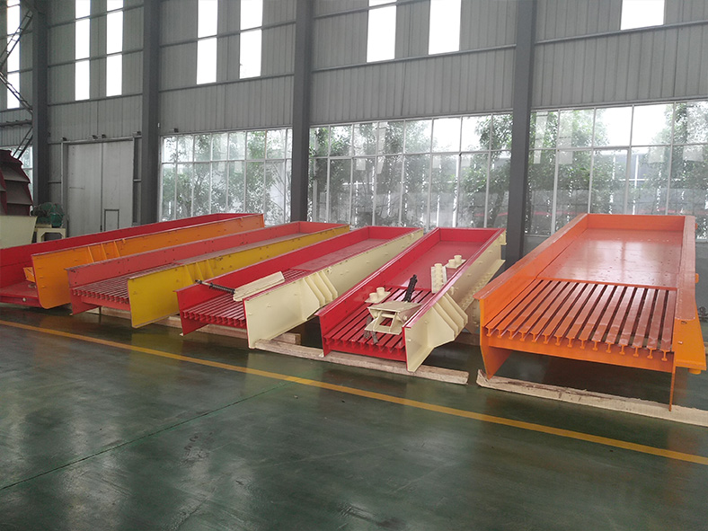 本公司生產(chǎn)的喂料機系列分為激振式喂料機與直線式喂料機兩種。激振式喂料機系列采用兩臺激振式電機,用戶可自由調(diào)整喂料機的振動頻率,從而完全控制石料的喂料速度,保證整條生產(chǎn)線的順暢運行。直線振動式給料機,具有振動平穩(wěn),工作可靠,壽命長等特點??蔀樗槭瘷C械連續(xù)、均勻喂料,并對物料進行粗篩分。廣泛應(yīng)用于選礦、建材、硅酸鹽和化學(xué)工業(yè)中的碎石、篩分聯(lián)合設(shè)備中。